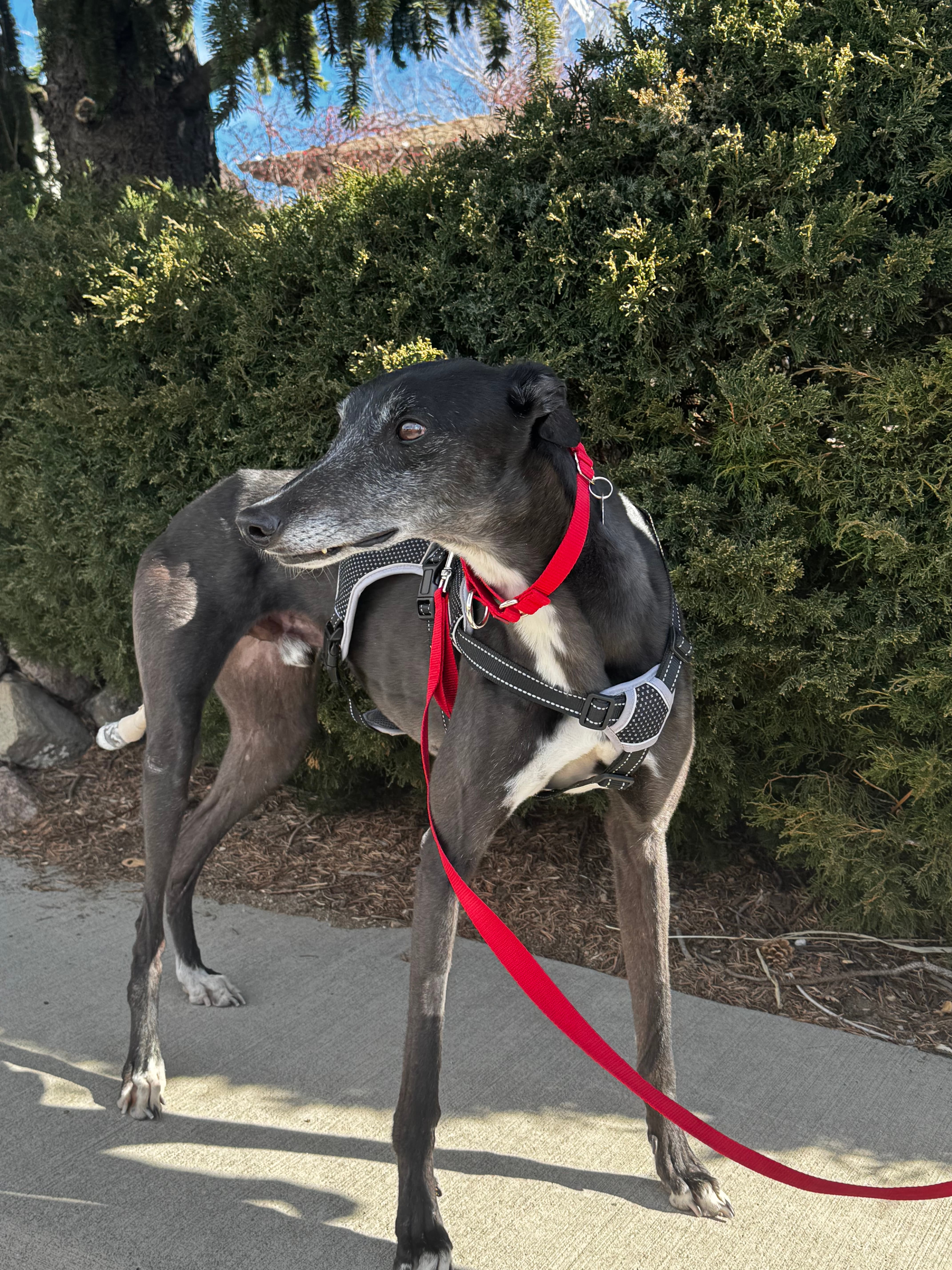 Hi, friends! I’m Merrill! I’m a 4.5-year-old greyhound gentleman with excellent manners and even better cuddle skills. I’m what you’d call a “classic greyhound,” which means I’m very passionate about three important things: food, being a couch potato, and being close to my people. My favorite thing in this world is having my neck scratched, and I will politely place a paw in your lap to let you know when it’s time for more. (It’s usually time for more.) I’m a good listener and a quick learner. I already know my name, “come here,” and “no,” and I try really hard to follow the house rules. I’ve been polite and friendly with the other dogs in my foster home, and I’m just an easy guy to have around. One thing that might surprise you about me is that I love going out for a light jog! I’ll keep pace next to you for 15–20 minutes before heading home for a well-earned nap on something soft. When I’m not out being athletic, I’m very content being your quiet, sleepy companion. I really like being with my people, so a home where I get plenty of love and attention, and maybe another dog friend, would make me feel extra secure. I could be great as an only dog too, but either way I promise to take my job as your loyal shadow very seriously. If you’re looking for a well-mannered boy who can be both your walking buddy and your professional couch snuggler, I might just be your guy. I’m ready to find my forever home! Apply to adopt me at friendsofretiredgreyhounds.org 🥰🐾