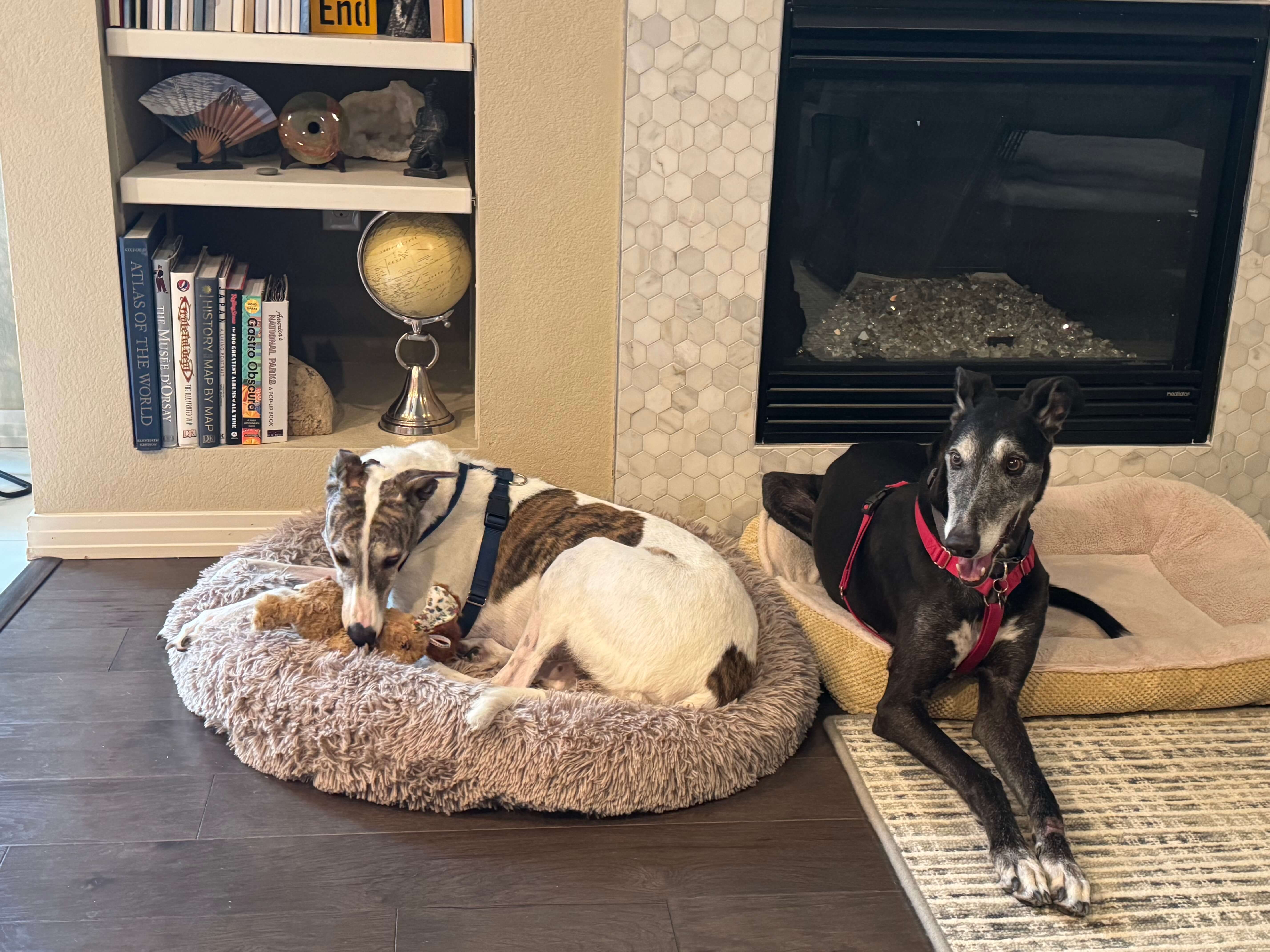 Hi Friends - We have a special foster/adopter need. We have two hounds that are needing to be rehomed due to their owners going into a retirement home and not being able to keep them. Skye is a beautiful 7 yr old white w/brindle female greyhound and Mark is a handsome 8.5 yr old black male Greyhound mix. Both dogs are not cat safe. We need to find a forever home for these two bonded hounds ASAP. If you are interested in adding these two hounds to your family, please let Lee know by texting her at 720.675.5975. Need a quite home without cats or small dogs.